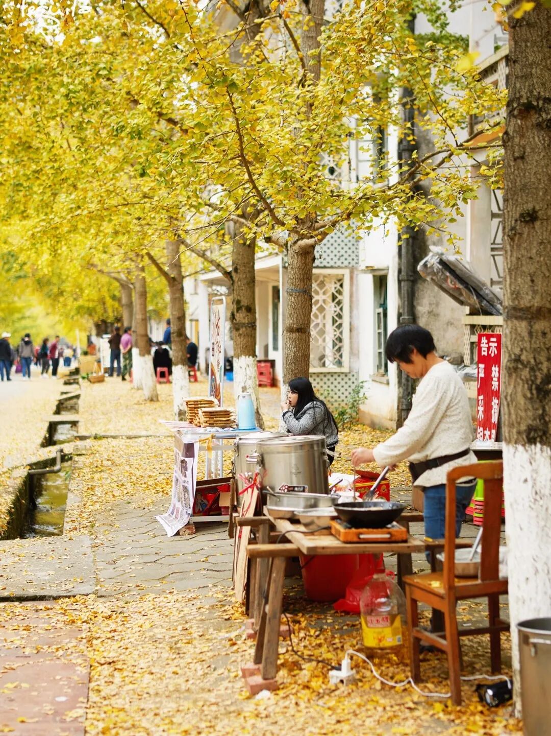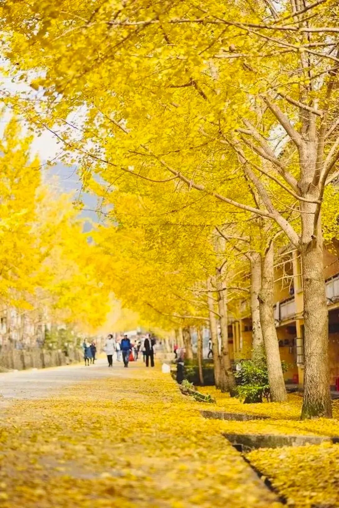 銀杏黃葉鋪滿(mǎn)地,踩上去沙沙作響