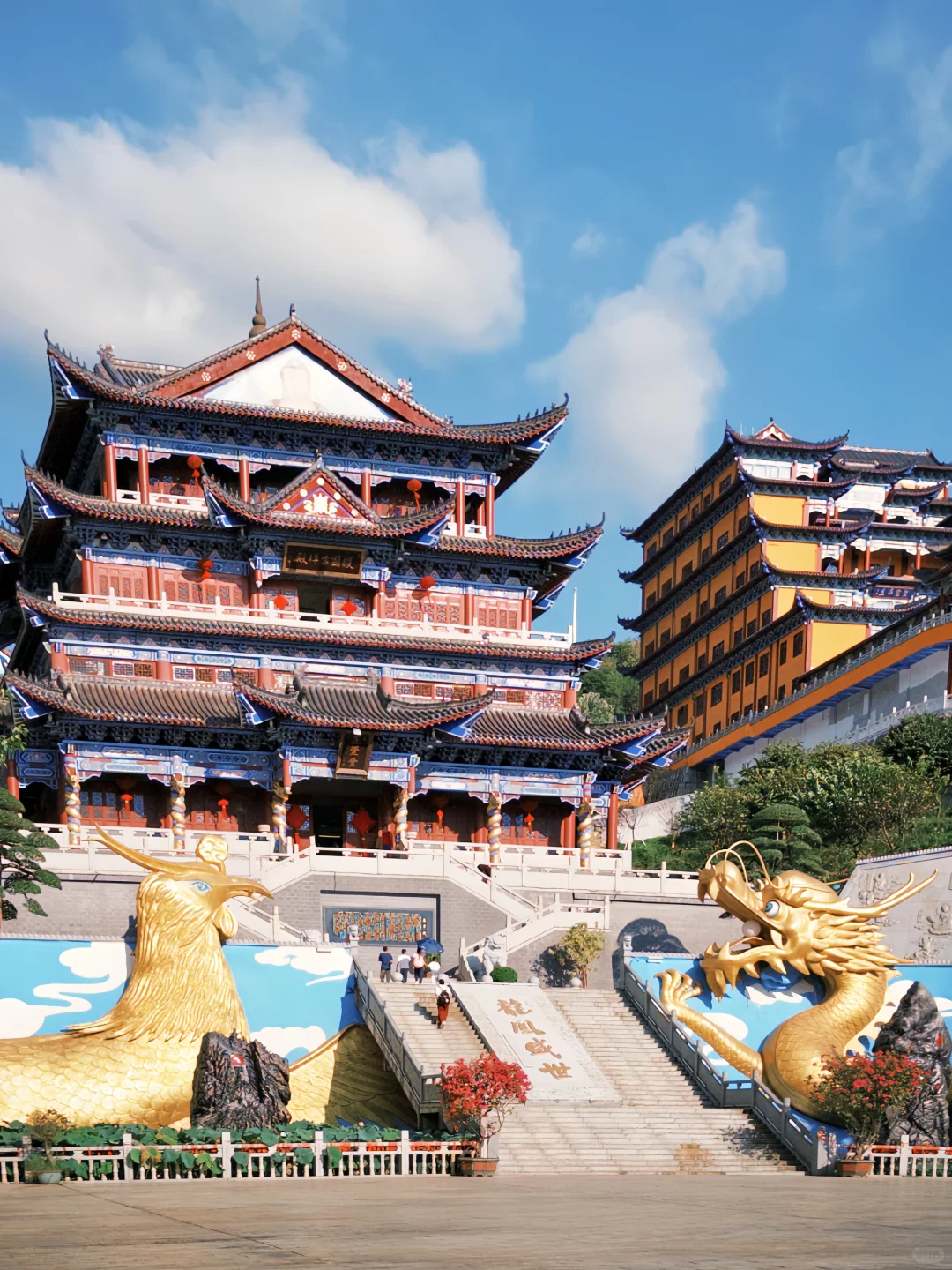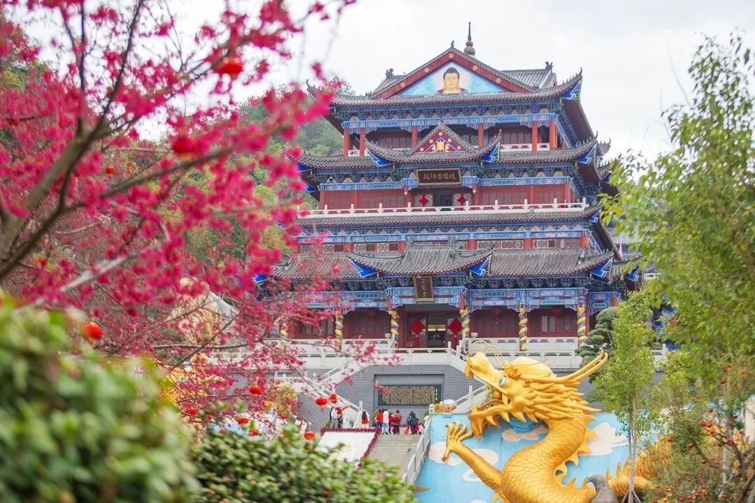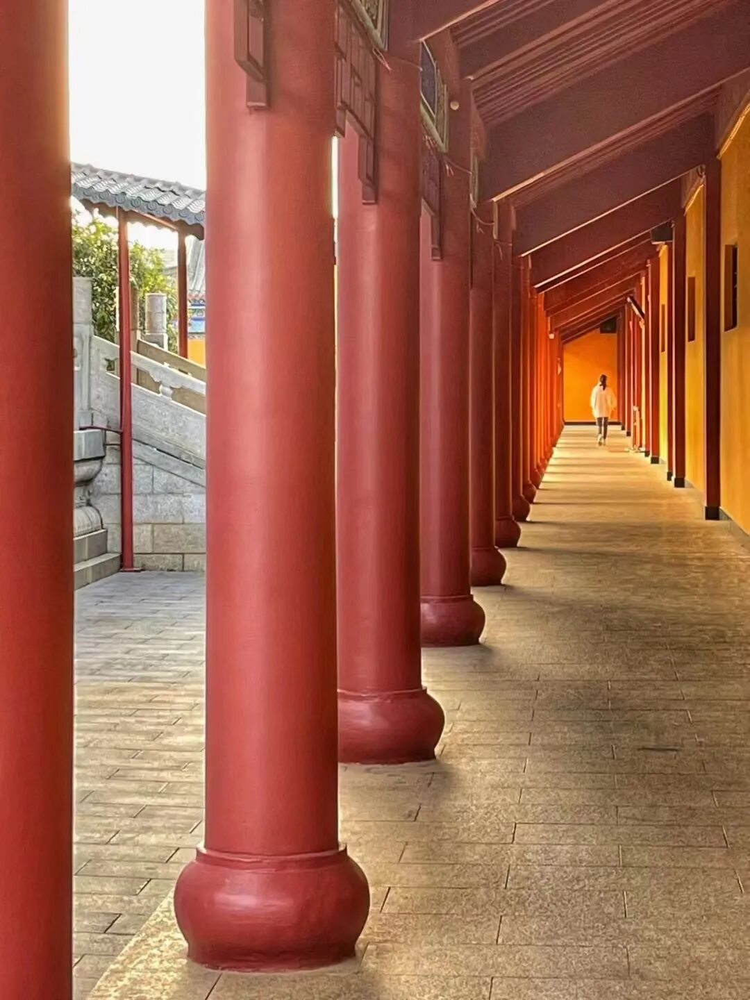 古寺依山而建,紅墻黛瓦隱于青山翠柏間,既有千年古剎的莊重,又藏著江南園林的雅致。
